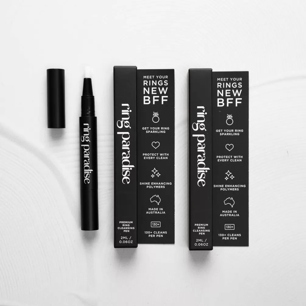 Meet your rings new BFF! Our incredible Ring Cleansing Pen brings dull diamonds back to life and ready to blind you with their sparkle. She is vegan friendly, cruelty free, Australian made, features protective polymers, 130+ cleans per pen and makes your diamonds sparkle like nothing else – all in one super easy to use pen.